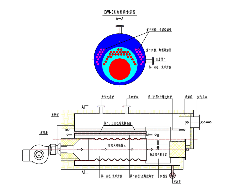 產品簡介:SZS系列燃油燃氣蒸汽(熱水)鍋爐為雙鍋筒縱置式“D”型布置快裝水管鍋爐。它由上下鍋筒、膜式水冷壁、對流管束及煙氣冷凝回收裝置組成,燃料在爐膛內燃燒后,煙氣經對流管束及煙氣冷